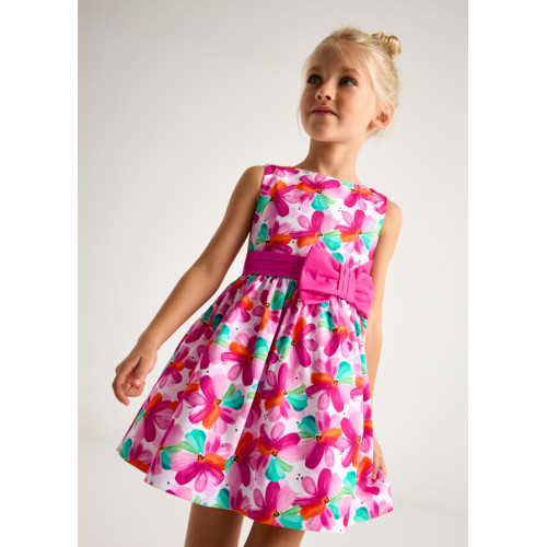 Šī MAYORAL rozā kleita ar ziedu apdruku ir lieliska izvēle mazai dāmai, kura vēlas izskatīties gan eleganti, gan rotaļīgi!